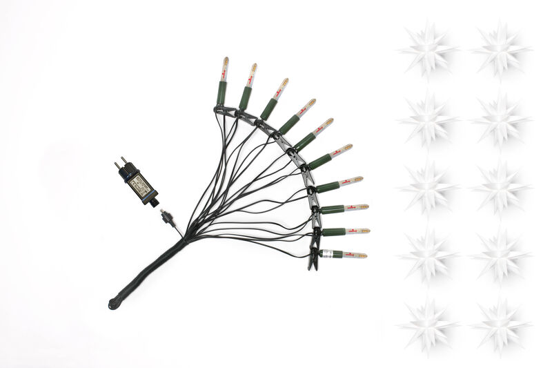 10 Kunststoffsterne, ca. 13cm ø (zum Aufstecken auf mitgelieferte